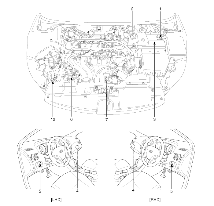 7 . Starter 8. Neutral switch 9. Clutch switch 10. Door switch 11. Seat belt switch 12. Hood switch |