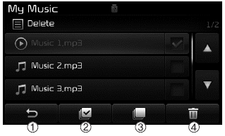 From the List screen, it is possible to delete files you previously saved into My Music.