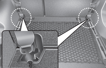 To keep items from shifting in the cargo area, you can use the four holders located in the cargo area to attach the luggage net.