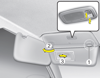 To use the vanity mirror, pull down the visor and open the mirror cover (3).