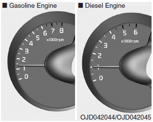 The tachometer indicates the engine speed in revolutions per minute (rpm).