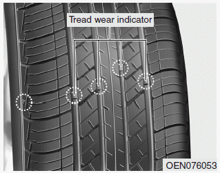 If the tire is worn evenly, a tread wear indicator will appear as a solid band across the tread. This shows there is less than 1.6 mm (1/16 in.) of tread left on the tire. Replace the tire when this happens.