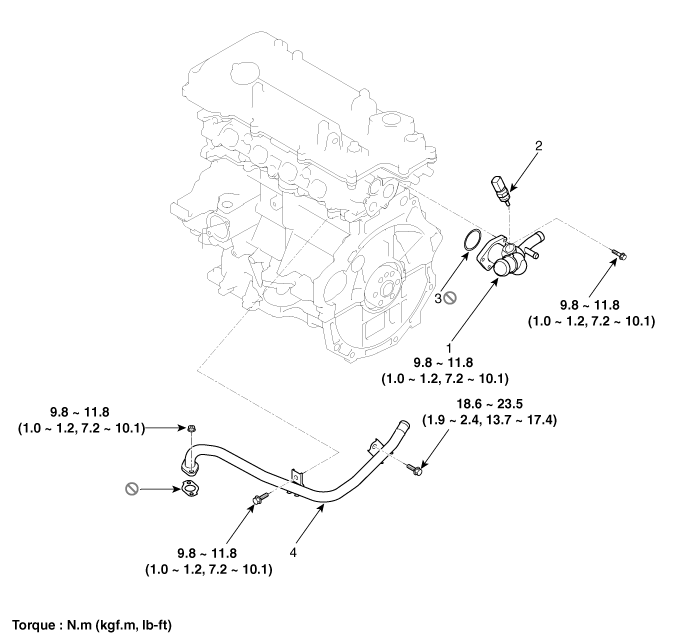3. Gasket 4. Water 5. Bypass hose |